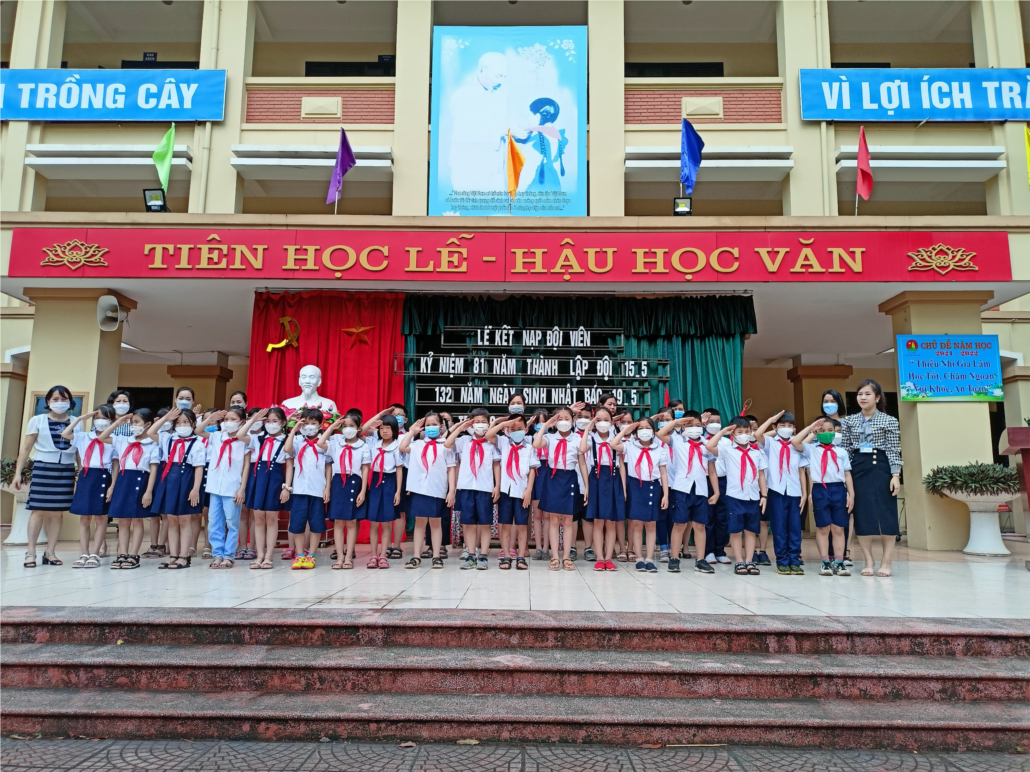 Xét nguyện vọng của các em học sinh lớp 3A, 3B, 3C,3D, tự nguyện xin vào Đội. Trong không khí hân hoan thiếu nhi cả nước đang ra sức thi đua lập thành tích chào mừng kỷ niệm kỷ niệm 81 năm Ngày thành lập Đội TNTP Hồ Chí Minh (15/5/1941 – 15/5/2022), kỷ niệm 132 năm Ngày sinh nhật Bác Hồ kính yêu (19/5/1890 – 19/5/2022). Ngày 9/5 /2022 Liên đội Tiểu học Phú Thị long trọng tổ chức Lễ kết nạp đội viên mới cho 119 em học sinh khối 3 vào Đội TNTP HCM.