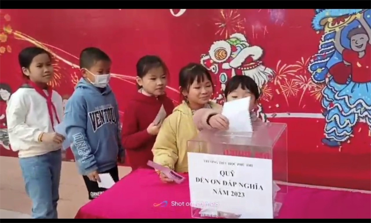 Thực hiện công văn hướng dẫn của phòng GD&ĐT Gia Lâm về công tác xây dựng Qũy đền ơn đáp nghĩa năm 2023.Theo truyền thống hàng năm, thầy trò trường TH Phú Thị tích cực tham gia ủng hộ quỹ đền ơn đáp nghĩa. Đây là một việc làm hết sức ý nghĩa thể hiện sự tri ân của thầy và trò và trường TH Phú Thị . Nhà trường cũng thường xuyên giáo dục, nhắc nhở cho các em hiểu được truyền thống uống nước nhớ nguồn và tình yêu quê hương đất nước.Với ý nghĩa đó, sáng ngày 30/1/2023, nhân dịp đầu xuân năm mới, nhà trường phát động xây dựng Qũy “Đền ơn đáp nghĩa” năm 2023 tới 100% cán bộ giáo viên, nhân viên và học sinh nhà trường. Với tình cảm, sự sẻ chia và trách nhiệm của mình chúng ta tin rằng phong trào này sẽ luôn được lan tỏa.
